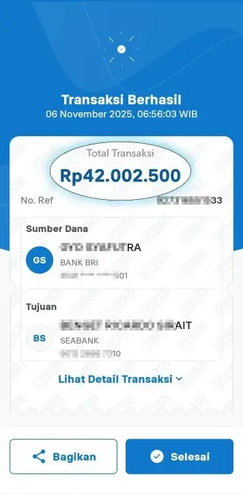 Pilihan Bank : BANK BCA,BNI, BRI ,SEABANK dan masih bank lainnya